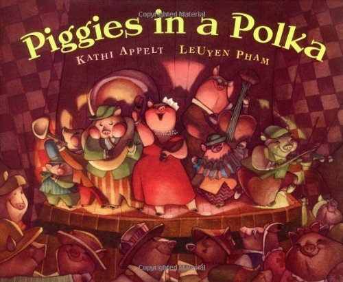 It's time for the annual holler hootenanny, and these little piggies know how to party. "The drummer piggy hits a groove,/ he keeps the polka beat./ It's a hoopy-shoopy rhythm/ and the pigs all stomp their feet," writes Appelt (Oh My Baby, Little One). The star of the barn dance is Porcina, a Rubenesque chanteuse whose high notes make "all the bachelor piggies sigh." But the real show is in Pham's (Before I Was Your Mother) suedelike, digital illustrations. She crowds the barn floor with ecstatic couples—and an occasional singleton—carried away by the music and merrymaking (in one scene, a pig can be spotted floating in the punch bowl; throughout, a duck quacks with abandon). Hues of rose and gold emanate from the footlights and lanterns, bouncing off the walls and illuminating the angular planes of the pigs' plump bodies. Investing her porcine participants with an individual personality, Pham makes the pages pulsate with the heady crush and buzz of a joint that's jumpin'. Ages 3-7. (Aug.)