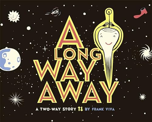 Viva’s Along a Long Road featured a bicycle trip that wound through the book from left to right. With its matte paper and silkscreen-like images, his sophomore effort shares the stylish look of its predecessor, but delivers a more ambitious story. The book is meant to be read vertically, and the journey proceeds from top to bottom and back again; Viva’s telegraphic writing ensures the story works just as well in reverse. On the top page, a happy alien family gathers (they look like space octopuses, with antennae and a fringe of tentacles). Their alien child starts a downward slide along a yellow path past celestial bodies (and a shoe), through the Earth’s atmosphere, past a whale and school of dapper fish, and into the blackest ocean depths. “Deep asleep,” the final page reads, as the alien lodges on an underwater cliff. The return trip shows the creature rising up through the ocean and back through deep space (“Under/ Over/ Around/ Zooming”) before being reunited with his family: “A home/ A hug.” Intelligently conceived and handsomely executed, it’s a potential classic. Ages 3–6. Agent: Charlotte Sheedy Literary Agency. (Apr.)