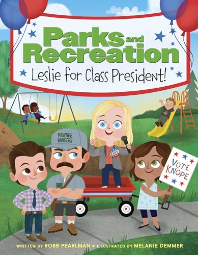 Proclaiming “We all have a right to life, liberty, and the pursuit of happiness. And waffles!” young Leslie Knope launches her campaign for Pawnee Elementary’s highest office. But her eagerness leads her to make promises that she may have trouble keeping—like providing those waffles, or canceling school on any Treat Yo Self Day—resulting in a crisis of confidence (“What if I let my classmates down?” Pearlman writes). Sage advice from shop teacher Ron helps Leslie realize that if she proves herself “eager, honest, and responsible” for her constituents, she will succeed. It may be mystifying to those who aren’t in the know, but the book checks all the Parks and Recreation fan boxes: Demmer’s vector-style illustrations, reminiscent of familiar cartoon styles, replicate the show’s format of group scenes alternating with audience asides, and the catchphrases and character ticks are dutifully represented. Ages 4–8. (June)