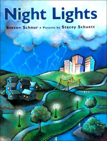 Schnur's (Spring: An Alphabet Acrostic) soothingly lyrical verses describe a girl's bedtime counting ritual. Beginning with the conch-shaped nightlight she sees in her room (""one seashell on the nursery wall,/ two amber blinking clocks""), the child observes the sources of light as she progresses through the house, then her neighborhood (""thirteen streetlamps light the park""), the city (""fourteen stoplights blink,/ fifteen towers scrape the sky"") and the world beyond. The tally continues to 20, leaps to 50, 100 and finally ""a thousand sparkling fireworks,/ one million twinkling stars!"" The light that pierces the darkness in these pages offers reassurance that all is well. Schuett (Somewhere in the World Right Now) invents a softly muted backdrop of purples and mossy greens to show off the flicker of fireflies, ""gleaming raccoon eyes"" and ""pond-reflected moons"" that undulate in the ripples from a frog's leap. These ever-widening circles of textual and visual imagery create a sense of expansiveness that culminates in an explosion of fireworks and stars. Ages 3-up. (Apr.)
