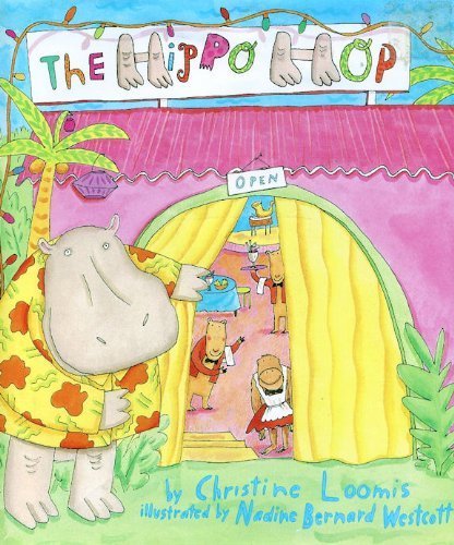 As this festive rhyming picture book begins, a polite hippopotamus in tropical attire ushers readers into a jungle hot spot, a pink shack called the Hippo Hop. Behind its curtained doorway, smiling capybara waiters and a simian hostess hover expectantly. Before long, the Hop fills with ``yaks on sax,'' elephants playing trombones, snakes shaking maracas, even a dancing wildebeest who clutches a rose in her teeth. Almost every animal wears round beatnik glasses, and every one of them is in motion. At evening's end, the music grows mellow, and the staff cleans up in preparation for the next night, when the fun begins all over again. Loomis (One Cow Coughs) names numerous types in her toe-tapping narrative, inviting readers to scan each crowded spread for the spotlighted animals (``Zebras get jamming/ On the ivory keys,/Monkeys bang congas/In the coconut trees''). Westcott (Round and Round Again) tones down her sometimes bubblegummy palette, using bright watercolors and twirly lines to intensify the visual rhythms. The jitterbug-jump art and text make a great pair-Loomis and Westcott really know how to throw a party. Ages 4-7. (Aug.)