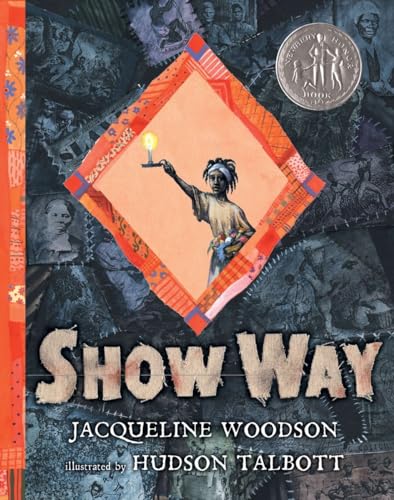 ) story, both historical and deeply personal, begins as a seven-year-old girl is sold into slavery and taken to a South Carolina plantation "without her ma or pa but with some muslin her ma had given her." There she learns to "sew colored thread into stars and moons and roads that slave children grew up and followed late in the night, a piece of quilt and the true moon leading them." Later, her daughter also stitches quilts that become "a Show Way" to guide captives escaping to freedom. The quilt becomes a metaphor not only for physical freedom but for freedom of expression. Long after emancipation, subsequent generations of women in this family stay connected through quilting, using needle and thread as a means of support and as a creative outlet. Woodson eventually reveals that this is her own lineage, and "[her] words became books that told the stories of many people's Show Ways." Talbott uses the quilt motif in rousing ways, piecing together quotes or news items for a pair of spreads about one generation "walking in a line to change the laws" as well as in softly quilted patterns that tie together the love of a child, a theme throughout this elegantly designed volume. Ages 5-up. (Sept.)