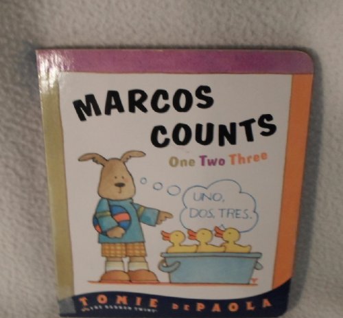 Tomie de Paola brings back the Barker Twins in two bilingual concept books, Marcos Counts and Marcos Colors. In the first title, the youngest Barker learns to count from one to 10 from Moffie, who presents the numbers in English while Marco repeats them in Spanish. They count everything from three-tres-rubber ducks to eight-ocho-crayons, until Marcos leaves and returns with 10 red roses for Mama. In Colors, Moffie's twin brother, Morgie, presents the colors that Marcos repeats in Spanish. The art depicts appropriate objects such as a pumpkin and a tabby cat in orange, or naranja.