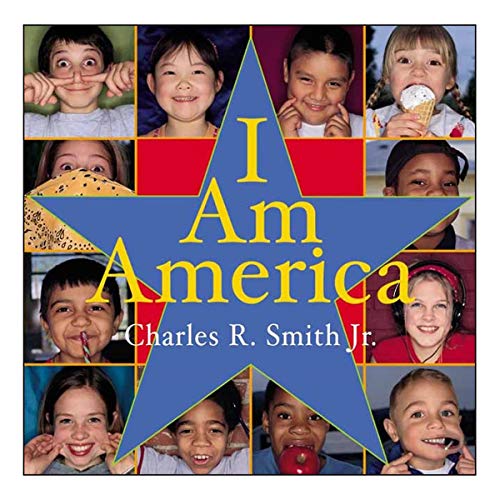 ) in large, bold type at the star-spangled opening of this eye-catching photographic anthem. Smith captures his multiracial subjects in two- and three-picture series as the text sings a paean to individuality and inclusion. "I am almond eyes./ I am a proud nose./ I am cheeks freckled the color of a rose." Smith's theme is a perennially popular one ("I am America,/ and America is me"), and if the text has a familiar ring, the photos have an instant freshness. Most of the kids gleefully mug for the camera, caught indulging in the kind of behavior that usually prompts adults to say, "Stop fooling around so I can take this picture!" A preteen girl takes off her bandanna and holds it over her face to play peek-a-boo, then assumes a faraway look that suggests a private reverie; a boy with a lollipop shows off his tinted tongue and then uses the candy to give his cheek a squirrel-like bulge. The pictures' mischievous spontaneity brings to mind the giddiness of repeated sessions in a photo booth. Laid out on high-voltage solid-colored backgrounds that change from page to page, the photos are framed in thin contrasting bands that make them seem to vault off the paper. Lots of fun. All ages. (Nov.)