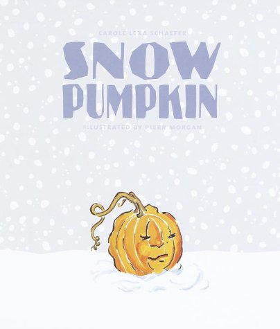 October snowfall inspires an unusual snowman in this low-key tale by the team behind The Squiggle. Delighted to find ""a little pillow of snow"" on her windowsill one fall morning, Lily bundles up and races to the park, where other children pack snowballs, build forts and make snow angels. There's barely enough snow to go around, so Lily and her friend Jesse improvise. They visit a community garden where three pumpkins show ""in the snow as bright as three orange suns,"" and select one to top their snowman. Schaefer's nicely understated text entrusts much of the storytelling to the illustrations. Lily's grandmother is too busy to come and see the ""snow pumpkin man"" (""`Tomorrow,' she said""), but doesn't explain what she's doing with her needle, thread and colorful fabric; the closing pages picture homemade Halloween costumes. Morgan paints the episode on eggshell-brown stock that accents the downy puffs of snow and cozy, mismatched woolens worn by the excited children. This book quietly reminds its readers of the electrifying first snowflakes and the pleasurable warmth of an oversize sweater. Ages 5-8. (Sept.)