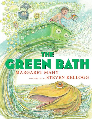 The boys who live next door to Sammy are thrilled when their father finds a racy red speedboat at the flea market. Sammy, however, is puzzled by his own father’s purchase: a clunky, green bathtub. Kellogg’s reliably ebullient illustrations let readers know that this is no ordinary tub: for one, it has an expressive, wide-eyed face, and Sammy hears the tub “give a gurgle as if it were laughing.” After the tub jumps to life and carries Sammy to the seashore during his bath, the late Mahy’s boundless whimsy and Kellogg’s freewheeling sense of play combine in a rowdy swashbuckling adventure. Sammy sails out to sea in the tub and, with the help of a friendly sea serpent, engages in “a wonderful bath-and-buccaneer battle” with pirates. “The buccaneers had swords, but Sammy bewildered them with bubbles and baffled them with soapsuds,” writes Mahy. Like this acclaimed duo’s last collaboration, The Rattlebang Picnic (1994), this story is distinguished by a frenetic energy, old-fashioned charm, and rapid plot zigzags. Ages 4–8. (July)