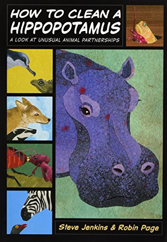 Who better than a husband and wife team to spotlight intriguing partnerships in nature? Among the many relationships Jenkins and Page (How Many Ways Can You Catch a Fly?) explore is that of the upside-down jellyfish and the crab it lives upon. “The jellyfish’s stinging tentacles provide protection in return for crab meal leftovers.” Jenkins’s meticulous cut-paper illustrations, as eye-catching as ever, reveal fascinating stories of animal symbiosis on each page. The paneled layout—graphic novel style—offers a dynamic format for these concise, present-tense stories of mutualism, complete with catchy titles. “Dinner is served” reads the spread about a seagull and a sunfish (the massive sunfish attracts the seagull with its fin, and in turn the bird eats parasites living on the fish). Closeups, aerial views, and vignettes of animals realistically rendered in Jenkins’s trademark collage have a cinematic quality. An author note about the different types of symbiotic relationships, as well as appended pages detailing each animal’s size, habitat, and diet, reinforce the book’s value as a scientific introduction to the topic. Ages 6–9. (May)