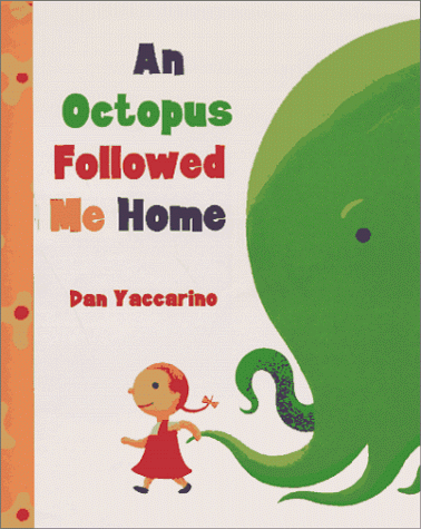 Strange critters befriend the narrator of this absurd tale, which pokes fun at those who adopt stray puppies and kittens. A tiny girl leads a huge, balloon-shaped octopus into a bathtub (""An octopus followed me home today,/ One that I promise to love""). Her exasperated father is not amused ("" `I'd like to remind you,' my daddy said,/ `Of all the pets I let you keep./ Like the crocodile who lives under my bed/ and won't let me get any sleep' ""). In chiding tones, the parent lists the bear behind the couch, the seals in the pool and the ""two-elephant garage,"" just to name a few. Finally, the girl relents and releases the tentacled creature, only to find another ridiculous (extinct) beast for the book's closing image. Yaccarino--who explored the idea of impractical pets in If I Had a Robot--specializes in simple text and whimsically distorted shapes. Double-page spreads feature zoo animals with bulbous, inflated bodies that end in graceful, swooping tendrils; the bulky elephants extend vinelike trunks, a roomful of rabbits sport tapering ears and a giraffe's neck ends in a pointy nose. With a plot and images fueled by imagination and exaggeration, this is one story specially tailored toward beginning readers. Ages 3-8. (Oct.)