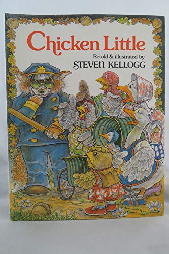 Kellogg applies his antic imagination to an unusual version of dippy Chicken Little's story. Foxy Loxy, disguising himself as a cop, herds Chicken Little and the other birds into a van when they report the falling sky. It's an emergency, wily Reynard declares: ""I'll take you directly to headquarters!'' Foxy drives off to his lair and happily plans poultry feasts to dine on for the next several months. But Kellogg's new actor in the drama, Hippo Hefty, is a policeman and a hero. He arrests Foxy Loxy and the feathered captives go home instead of into an oven as they do in other retellings. Instead of regretting the confusion she has created, Chicken Little plants the ``falling sky'' acorn beside her coop. When it grows into a tall oak, she sits in the shade and tells her grandchildren about her Great Adventure. The full-color pictures of the characters (in jazzy costumes) and locale are packed with excitement.(All ages)