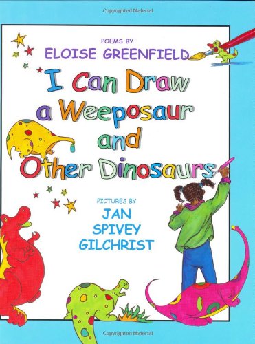 A menagerie of fanciful beasts springs from the imagination of the young artist who narrates this slim collection of verses: ""My dinosaurs/ walk from my brush/ and live,/ they do what my/ moving hand/ tells them to do,/ they are paint/ on paper./ I love them."" The premise is promising and the lineup engaging, with such creatures as the Smellasaurus, Messysaurus and Shoppersaurus (""The dinosaur mall/ Is his main habitat"") lurking on the pages. But both Greenfield and Gilchrist (previously paired for Night on Neighborhood Street) turn in uneven performances. A number of Greenfield's verses display a nimble, Prelutsky-like wit--the jaunty Babysaurus, for instance, is ""his mama's little baby,/ Smiling sweet in Tennessee,/ But his middle's in Montana,/ And his tail's in Waikiki"")--while other entries are awkward (""He fell when he tried to do a handstand,/ He fell when he walked a beam,/ But he was the greatest at landing on top/ Of his gymnastics team""). Gilchrist's fans will find only a few of her usual warm, realistic watercolor portraits (namely, of the child speaker); most of the illustrations are rendered in colored markers, in a flat, cartoonlike style, as if drawn by the narrator himself. Unfortunately, the result is not so much childlike as contrived--the compositions lack spontaneity. Ultimately, this is neither the author's nor the artist's best effort. Ages 4-up. (Mar.)