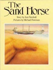 An artist who lives on the beach in St. Ives with his wife and baby loves to sculpt the sand into animal shapes, especially horses. One particularly fine day, when the white horses (whitecaps) gallop over the water, the artist works all day to mold a powerful sand horse. People throw him coins, and when the sun sets, he leaves. The sand horse, embedded in the beach, hears the call of the foamy white horses and longs to join them, and by dawn, he has. A smooth beach greets the artist, who smiles with the knowledge of where the sand horse has gone. A poetic paean to the eternity of the tides, or gentle musings on the ephemeral nature of art--this is a poignant story. The lyrical text combines with Foreman's dusky, delicate paintings to evoke the pounding, rhythmic surf and the lure of the sea. Ages 5-8. (Sept.)