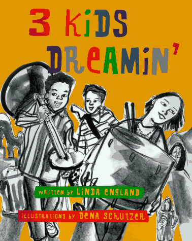 Slangy dialogue and gestural monochrome illustrations give a streetwise feel to England's first picture book. Guitarist Ramone, rapper Willie and drummer Yock form a group called Squeezed: ""Sounds come growlin'/ and hummin'/ and thunderin'/ from the drum's inside"" while the guitar makes ""High-pitched screams/ Low moanin' sighs/ Electric sounds."" The kids practice in a basement until Yock's mom pulls the plug on their amp. Determined to play, the three tote their instruments to a ex-musician's apartment. Mr. Moses ""Bass"" Smith, ""smilin' the dreams/ of an old bass man,"" understands their dilemma and welcomes them into his place for a jam session. Later, they make a nervous debut at a party for old-time jazz fans (with Mr. Moses on standup bass, natch). England styles this tale as a passing of the torch. The blind jazzman is a stock character, but the trio--whose members include two boys and a girl, black and white--suggests possibilities for budding artists. Schutzer (A Million Fish... More or Less) takes an unorthodox approach to the imagery, which is rendered in black crayon and ink on paper. Thick, grainy strokes contrast with thin ribbons of line, while charcoaly layers and diluted washes provide shades of gray. The drawling diction and loose, edgy art convey a hip attitude, but the message is anything but cynical--at the heart of the book lies a conventional success story. Ages 7-10. (Apr.)