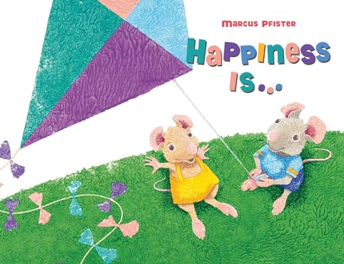 Zoe and Leo, a pair of "best mouse-friend[s]," dream up metaphors to try to encapsulate the feeling of happiness. Pfister again uses the crinkly textured illustration style seen in recent books like The Yellow Cab and Ava's Poppy as the two mice turn to nature for inspiration. "Happiness is feeling a snowflake melt on your tongue in the winter," Zoe offers, as Pfister pictures her wearing a striped scarf over her summery yellow jumper. After a few more examples from Zoe, Leo catches on: "Hmm, I get it.... Happiness is discovering a little piece of cheese in your trouser pocket." There's no plot to speak of%E2%80%94the two mice simply unfurl additional examples and head on their way, flying kites through a turquoise meadow. Images of the duo blowing dandelion seeds into the wind, stomping in spring puddles, and "shuffling through a thick carpet of autumn leaves" are clear and evocative, and the book may shine most as a prompt for spurring similar creative exercises at home or at school. Ages 4%E2%80%938. (Aug.)