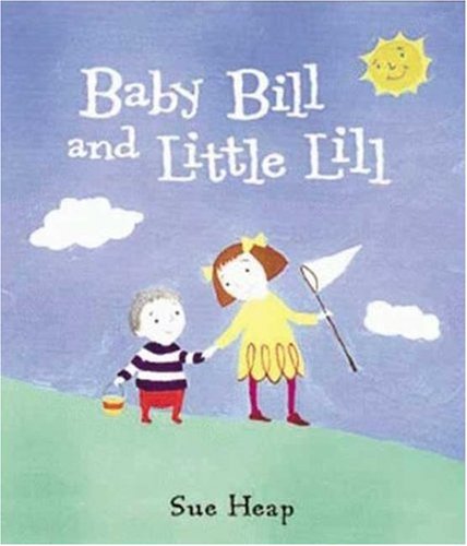 Time and tide may wait for no man, but without them there would be no happy ending to this story. Pail in hand, Baby Bill declares he wants a ""pet fishy,"" so his sister, Little Lil, agrees to take him down the very steep, lime-green hill that leads to the sea. Along the way, the party grows to include a bird, a bee, three sheep, a Dalmatian and a cat; through a combination of momentum and Baby Bill's enthusiasm, the group reaches their destination in a tumble, and Bill's pail floats out to sea. But Lil counsels patience, and when the moon rises, ""In came the waves; in came the pail""--and Bill gets his fishy. Heap's narrative has a diffuse feel and doesn't achieve the warm intimacy of her Cowboy Baby; the story's focus seems torn between Bill's quest and the accumulation and interaction of the secondary characters. But the full-bleed, double-spread drawings carry the book on the strength of their vibrancy and cheeriness, and Heap's quirky, petite characters pop off the densely colored backdrops of sky, sand, sea and grass. Several paintings starring the two siblings show the artist at her best. Ages 3-up. (Sept.)