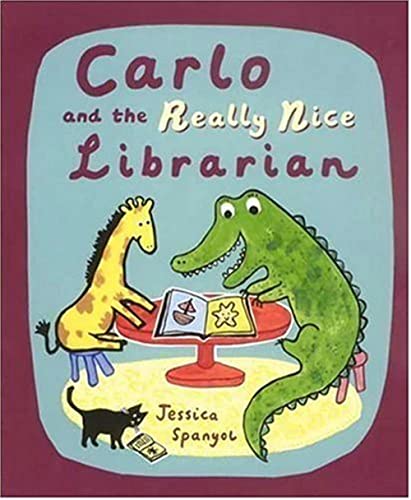Carlo and the Really Nice Librarian by Jessica Spanyol finds the bibliophile giraffe star of Carlo Likes Counting becoming friends with Mrs. Chinca, an alligator librarian who, though initially scary to Carlo, wins him over quickly. Carlo happily enjoys all the library has to offer, including the books, ""colorful posters"" and ""chairs with wheels."" .