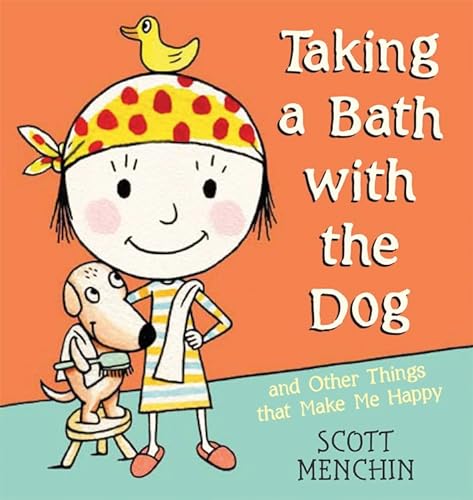 ) cheerily portrays the youngster and respondents in ink and watercolor spreads against pastel backdrops. Sweet Pea’s own dog, dressed in a shower cap and carrying a rubber ducky, replies “Taking a bath!,” while a rabbit likes to run on a hamster wheel (who knew?) and a woman with a nest of squiggly red hair indulges in adorning it with myriad bows and clips. A droll sense of humor is evident as well: an elderly man perches next to a tree stump, stating that he enjoys “counting,” while a dapper gentleman on a park bench demonstrates his love of “stripes” with a comically clashing outfit—and a striped tabby on a leash. Sweet Pea (who herself begins to smile about halfway through her informal survey) gradually realizes that many things make her happy and, in a rebus-like spread, she catalogues more than 20 things that do just that, including “bake cookies with faces,” “stick finger puppets on my toes,” “slurp spaghetti” and “swim at night.” This will likely inspire youngsters who are in a funk to seek joy in the unexpected as well as in the perfectly ordinary. Ages 4-8. (July)