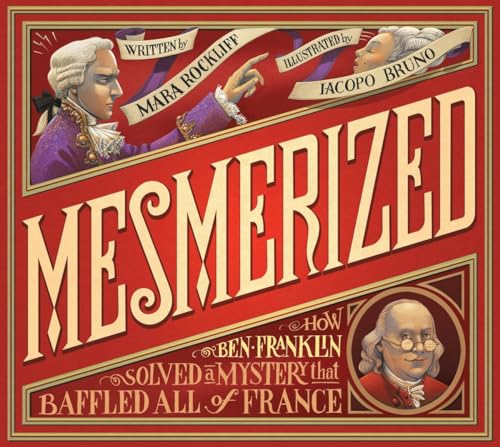 Rockliff (Me and Momma and Big John) sashays into the scientific and political world of the late 18th century with a playful narrative that explains the origin of the word “mesmerized” as it details Benjamin Franklin’s role in debunking a miracle cure of the day. Dr. Franz Mesmer’s secretive “medicine” is taking Paris by storm: “When he stared into his patients’ eyes and waved [his iron] wand, things happened. Women swooned. Men sobbed. Children fell down in fits.” In a gesture of indebtedness to King Louis XVI, Franklin demystifies Mesmer’s techniques using the scientific method, revealing that the man’s “cures” reside in the patients’ heads. Bruno’s realistic, digitally colored illustrations contrast Franklin’s unadorned American sensibilities with the fancier stylings of pre-French Revolution Paris (embellishments include curlicues, bold and flowery typefaces, and optical illusions on the endpapers). A lengthier retelling of the story is included, along with descriptions (printed on old-fashioned medicine bottles) of the placebo effect and how a “blind” scientific study works. A stylish and humorous exploration of the scientific method and the mysteries of the human mind. Ages 6–9. Author’s agent: Jennifer Laughran, Andrea Brown Literary Agency. (Feb.)