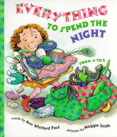 Asked to pack for even the briefest excursion, children invariably put in everything but the kitchen sink--a proclivity that Paul (Hello Toes! Hello Feet!) and Smith (Counting Our Way to Maine) capitalize on with inexhaustible exuberance. Arriving at her grandfather's for a sleepover, a dynamo of a girl gleefully starts unpacking her duffel: ""First some Apples we can share/ with Bunny and my fuzzy Bear./ They cry whenever I'm not home./ I couldn't leave them all alone."" But this is no simple alphabetical show-and-tell. The heroine is one of those children who seems to be everywhere at once, always coming up with a new idea (especially in the name of delaying bedtime): paddling a boat that she's constructed from chairs, playing queen with her quilt. Grandpa gamely plays along, not even seeming to mind when the girl shows him ""A Hairbrush for your hair,"" and then points out his bald pate. Rather than moving in a lockstep march to the progression of the alphabet, Paul's text has a wonderful loosey-goosey feel, with a consistently comic and plausible story line. Smith's strongly hued watercolors bounce with energy, and she endows the little girl with plenty of spunk. A skillful mixing of formats and perspectives and a playful use of type guarantee a whirlwind visual pace. Ages 2-7. (Mar.)