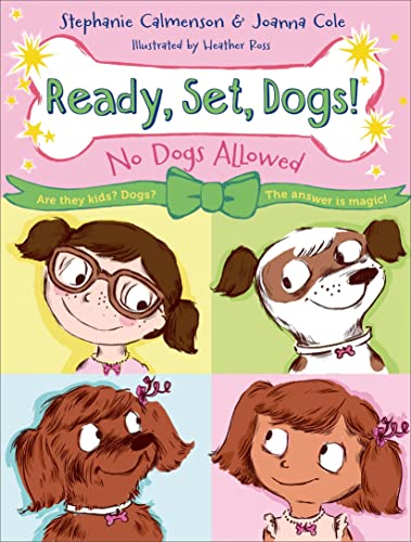 Frequent collaborators Calmenson and Cole begin the Ready Set, Dogs! series with a peppy story that takes the notion of dog-loving kids to the extreme. Best friends Kate and Lucie are obsessed with dogs, but live in an apartment complex that prohibits them. At a thrift shop, the two try on necklaces with a dog-bone motif and—by high-fiving and uttering “Woofa-woof!”—morph into dogs themselves. (Riffing on the joke that dogs and their owners can sometimes resemble each other, Ross’s cartoons show a humorous likeness between the girls’ human and canine selves.) Switching species at will, Kate and Lucie help lead three stray dogs to a shelter and taunt “the two most annoying boys on the planet,” who are bent on capturing and adopting them. In the story’s feel-good ending, the girls and boys join forces to win an Adopt-a-Dog Week songwriting contest. Good-natured banter and silliness (“Stop sniffing me!” “I can’t help it. Everything smells amazing—even you!”) move the story along at a brisk pace. Ages 6–9. Authors’ agent: Brenda Bowen, Sanford J. Greenburger Associates. Illustrator’s agent: Steven Malk, Writers House. (Oct.)