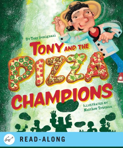 Eight-time world pizza dough–tossing champion Gemignani serves up a fictionalized account of just such a championship run. “Hold the anchovies!... This looks important!” Tony says when an invitation to compete in the World Pizza Championship arrives at his pizzeria. He and a co-worker cross the country in the “Pizzamobile,” collecting the remaining four members of their team. In Italy, they clinch the prize with a nifty feat, showcased in a foldout spread: they form a human pyramid—the top fellow reaches his perch via unicycle—while tossing dough. Vivid colors dominate Trueman's (