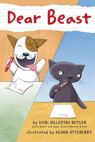 Andy had one pet at his mother’s house—a cat named Simon—and now there’s a dog at his father’s house, too. Polished, tightly drawn panel artwork by Atteberry (Ghost Cat) shows a mustachioed snail carrying a letter from haughty Simon to the new pet, Baxter. “This letter is to inform you that your services are not needed.... I prefer to care for him on my own.” The dog’s laconic reply is written in red crayon on a scrap of paper: “No can do.” As the correspondence continues, Simon’s letters grow chillier, while Baxter’s replies grow all the more sweet: “LET’S BE FRIENDS!!!!!!!!” Soon, there’s a crisis: Baxter runs away, Andy’s bereft, and Simon’s letters with a third pet and other local creatures help track Baxter down. Butler (the King & Kayla series) paces her epistolary story smartly and sweeps it free of distractions, making the contrast between Simon’s controlling elitism and Baxter’s dopey but eager heart easy to see. Though both love Andy, Baxter’s more interested in making him happy than in hovering over him (“There’s more to life than book reeports, you noe” Baxter tells Simon). It’s a message of acceptance that readers of this generous, easy-to-read story will warm to. Ages 6–9. [em](May)