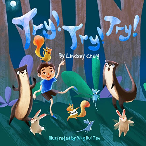 In an upbeat board book, a boy enthusiastically imitates friendly woodland animals, including a bear, birds, otters, and bunnies. With a fluid sense of movement, Tan’s appealing, big-eyed creatures run and play, but they are reluctant to try something new: “Now let’s dance!/ I shout with a wiggle./ Oh no! We can’t dance!/ say my friends all-a-giggle.” After a bit of encouraging, a moonlit dance party sees the animals shimmying alongside the boy. It’s a playful reminder that when you “Try! Try! Try!” the result can be a lot of fun. Ages 1–5. (BookLife)