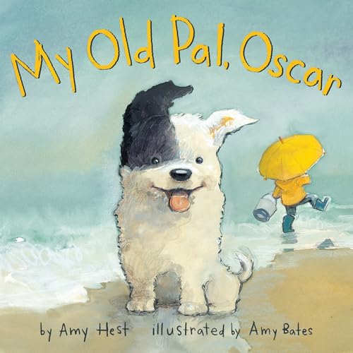 Hest and Bates return to the themes of their 2008 collaboration, The Dog Who Belonged to No One, in a tearjerker of a story about a heartsick boy who meets a stray dog on the beach. The day is as stormy as their unnamed narrator, who stomps across the sand while a perky black-and-white dog trails him. “Hello, you. Who are you? No tags? No name?” asks the boy before brushing the dog off. Readers gradually learn that the sandy-haired child is still mourning the death of his dog, Oscar. This is a story about mutual need, a need the boy takes a while to admit or recognize, but by the time a thunderstorm chases the two indoors, it’s clear the boy is ready to let this stray into his life. Bates, working in watercolor and pencil, creates wonderfully moody beachscapes dominated by gray stretches of sea and sky. While some readers may wonder whether the boy is going to attempt to find the dog’s actual owner, Hest subtly captures the boy’s sadness, resilience, and tenderness through his gruff, choppy narration. Ages 5–7. Illustrator’s agent: Justin Rucker, Shannon Associates. (May)