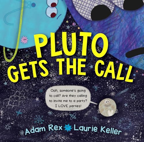 Mid-conversation with the reader (“So, not to brag, but I’m mostly made of nitrogen”), Pluto picks up the phone. “Some scientists from Earth,” seen arguing on the title page (“NO WAY! I’m not calling him”), have disappointing news for the former planet. Devastated and wearing his heart on his surface, he goes on a tour of the solar system to commiserate about his demotion to an ice dwarf. Along the way, Rex (Why?) provides lighthearted tidbits about asteroids, plutoids, and planets as Pluto introduces readers to everyone from “gassy” Neptune (“I’m not being mean, he just is”) all the way to the smallest (“And, dare I say, the cutest?”) planet, Mercury. Keller (Potato Pants!)—who knows her way around misunderstood inanimate objects—sets a silly mood with emoji-like mixed-media collages of lively planets who break the fourth wall to joke with the reader. Easily navigable, panel-less comics introduce an upbeat Saturn, a grouchy Jupiter (“Stop staring at my red spot!”), and a reassuring sun who reminds Pluto that he’s a beloved entity, no matter his status. Dynamic galactic characters and the tongue-in-cheek astronomy lesson should amuse. Ages 3–8. [em]Agent: Steven Malk, Writers House. (Nov.)