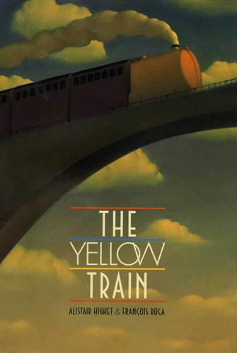 All routes lead to stunning vistas in this rail-riding fantasy originally published in France. ""One dark night"" a boy joins his conductor grandfather on Grandpa's Yellow Train. As the duo steams across the country, the boy sees the landscape of the past, vast and undeveloped--the way the land looked before Grandpa and his train helped to settle it. A Yeti helps push the Yellow Train through snowdrifts; the slightly more ominous-looking Snake People, heavily painted men on horseback, give chase. But by story's end, the boy is snug in bed, and awakens clasping the keys to the Yellow Train and remembering the secret midnight ride with his grandfather. Highet recalls similarly themed voyages like Chris Van Allsburg's The Polar Express and Paul Fleischman's Time Train in this adaptation of a work by Fred Bernard. The text's dreamy tone and stop-and-start pacing pull readers into the unusual, imaginative trip, but a few holes in the plot are sure to provoke questions. Roca's striking, oversize paintings suggest advertising posters of the 1930s and '40s. His dusky palette and dizzying perspectives result in larger-than-life images of mountains, skyscrapers and jungle greenery. Ages 7-up. (Sept.)