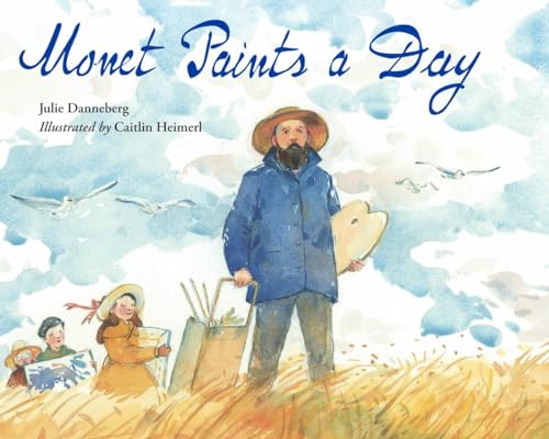 Danneberg dramatizes a day in Claude Monet’s life, based on an actual event in 1885. In Étretat, France, children assist Monet in carrying his paintings down to the shore. There, the bearded artist in blue begins to paint furiously. Danneberg’s dynamic language, first-person free verse in Monet’s voice, mimics the movement in Heimerl’s impressionistic artwork: “Quickly I... ruffle my paintbrush against the canvas as jade waters ruffle against the shore’s edge.” Asides provide brief descriptions of Monet’s art and personality: “Monet’s frustration sometimes led to temper tantrums.” This lovely tribute to the artist takes a surprising turn that emphasizes the challenge of capturing ephemeral moments in nature. Ages 6–9. (July)
