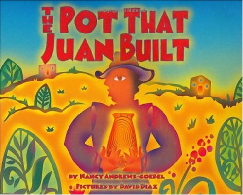 Noted Mexican potter Juan Quezada is the subject of an inventive and engrossing biography from newcomer Andrews-Goebel (who coproduced a documentary on Quezada) and Caldecott winner Diaz. On the left side of each spread, a "House That Jack Built"–style rhyme accumulates the often humble factors that shaped an extraordinary artist ("These are the cows all white and brown/ That left manure all over the ground/ That fueled the flames so sizzling hot/ That flickered and flared and fired the pot/ The beautiful pot that Juan built"). This lilting rhyme describes the rudiments of Quezada's process, but for more ambitious readers, the opposite page (unfortunately, in very small type) provides a straightforward elaboration ("Juan's pottery is fired the traditional way, using dried cow manure for fuels.... [M]anure from cows that eat grass, rather than commercial feed, burns at the best temperature to turn his clay pots into perfectly fired works of art"). Diaz ingeniously ties the two narrative threads together with strongly horizontal compositions and radiant, stencil-like digital renderings (a highlight is the spread in which ants point the way to a vein of fine white clay). The artist shows Quezada both at work and seeking inspiration in the scrubby foothills. The glowing tones of the artwork capture the sweep and heat of the sun-bleached landscape, while the highly stylized elements echo the decorative motifs of Quezada's pottery and lend a suitably mythic patina to this visionary artist's story. Ages 6-up.