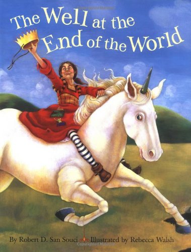 ) clever adaptation of the classic British fairy tale brims with wit, quotable dialogue and a modern sensibility. Likewise, talented newcomer Walsh visually blends conventional fairy tale trappings with more contemporary, amusing details. Her distinctive style combines royal splendor with ordinary homespun details. On Rosamond's lovely crown, for instance, a cord loops under her chin like a child's costume tiara. San Souci reverses the tale's traditional roles, making his Rosamond plain but practical and her stepsister, Zenobia, a slave to her mirror. Each girl makes a trip to the well at the end of the world and is rewarded (or not) according to their natures. The generous Rosamond receives not only "true love and new wealth" but health for her father, whose illness occasioned her trip. Zenobia's selfishness turns her into a "snag-toothed, long-nosed, sail-eared, cross-eyed" wretch. Welsh wisely transforms the story's trio of macabre heads that float in the well into faces that resemble large coins; she subtly transforms Rosamond's plainness into a beauty that comes from an inner radiance; the artist makes the most of comic opportunities for depicting Zenobia's outlandish downfall. Rosamond's story contains enough wit and gentle instruction to please readers of all ages. Ages 5-8. (Sept.)