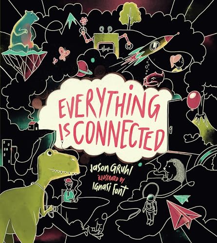 One of Bala Kids’s inaugural releases, this waggish picture book takes its title to heart, emphasizing readers’ connection to an eclectic roundup of people, objects, and phenomena. The narrative, which features a varying rhyme scheme and a peppy rhythm, begins with kids’ relationship with their own bodies, then spans out to illuminate their kinship with family and those they know (“You’re connected to friends/ and to teachers at school,/ and even to people you/ don’t think are cool”) and don’t know (“You’re connected to people in Denver and Maine,/ in Paris and Baghdad, to strangers in Spain”). A menagerie of animals follows, culminating in a quirky conclusion: “But, you see, we’re connected./ We all play a part./ In life we’re the same,/ we’re all blobfish at heart!” Without interrupting the upbeat vibe, Gruhl incorporates some less-than-rosy associations, noting that though people are connected to such positive human-made things as toys, books, and prayers, we also contend with bullies, lies, and pollution. In sync with the freewheeling text, Font’s stylized pictures, many with stark black backdrops, usher this metaphysical story to an open-ended, empowering finale. Ages 4–8. [em](Feb.)