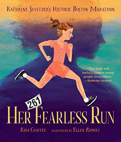 Kathrine Switzer turned heads when she ran—doing laps around her yard at a time when girls weren’t supposed to sweat, competing with the boys’ track team in college, and, in 1967, as the first woman to officially complete the Boston Marathon. Chaffee’s effective telling of Switzer’s iconic story emphasizes persistence, ambition, and discipline—the “pat, pat, pat, pat” of the runner’s tread is a repeated refrain—but centers on her love of the sport: “She thought running was magic.” When she completes the marathon, eluding an attack by a race official, she is asked why she did it, and says, “I like to run. Women deserve to run too.” In Rooney’s bright, straightforward illustrations, mixed media renders dramatic moments small (cutting sneakers to accommodate training-swollen toes) and large (the rage-twisted face of the race official), amplifying the empowering message. Ages 8–11. (Apr.)