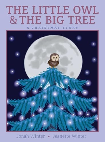 Jonah Winter narrates with quiet respect the journey of the saw-whet owl found in the 2020 Rockefeller Center Christmas tree, starting by describing her at home in the forest: “The owl didn’t have a name—/ and of course she didn’t:/ She was a wild animal.” Jeanette Winter zooms in on the owl in digital art, pulling back to show her tiny form against the great blue-green spruce she calls home. Then, suddenly, her tree is cut down and hauled to New York City on a flatbed truck amid cars that seem toylike, movement and noise signaled with emanata. The owl comes face-to-face with a worker, the bird’s subsequent rescue and convalescence conveyed as a way station before her restoration to her rightful home in nature, “somewhere out there under the stars.” With minimum sentimentality, the mother-son collaborators offer an effectively quiet celebration of a wild creature who encounters human civilization. An author’s note offers more details about the true story. Ages up to 8. (Sept.)