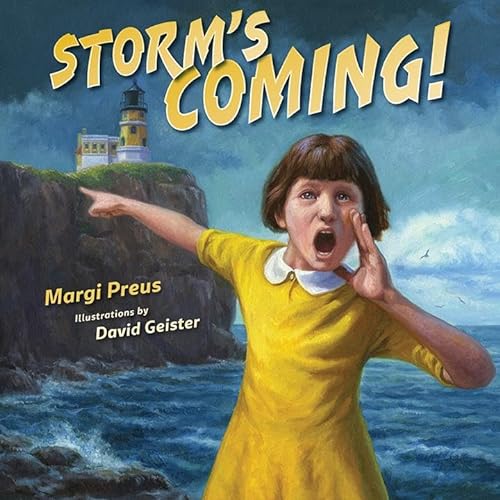 Preus's (Enchantment Lake) homespun story introduces a family that lives on a cliff high above Lake Superior, in the shadow of an imposing lighthouse. Observant Sophie reads clues from nature%E2%80%94bees take refuge in their hive, a dandelion closes up, etc.%E2%80%94as harbingers of an impending storm, sharing the news with each of her four siblings as they tackle outdoor chores. After Sophie delivers a final warning to her father, the lighthouse keeper, she helps him carry oil to fill the foghorn's engine and wind the clock that keeps the light's lens turning, before insisting on keeping vigil with him during the storm (it's clear that Sophie is both thrilled by and wary of the power wielded by a thunderstorm). Geister's (Surviving the Hindenburg) oil paintings offer tender, close-up portraits of the characters, authentically portraying Sophie's urgency and the dramatic transformation of sky and water as the storm descends. An author's note touches lightly on the science behind the folk wisdom that Sophie and her family relies on, which should fascinate weather-curious readers. Ages 3%E2%80%937. (Sept.)
