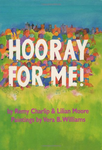 Back in print with new cover art and a fresh design, the 1975 Hooray For Me! by Remy Charlip and Lilian Moore will transport readers back to the ""me"" decade. Vera B. Williams's watercolors depict dancing people of all colors-yellow, brown, even green and blue-celebrating themselves and their family relationships: phrases like ""I am my big sister's baby brother"" and ""I am my cousin's cousin,"" painted in wild colors, are part of the pictures. New page borders by Williams add to the psychedelic effect.