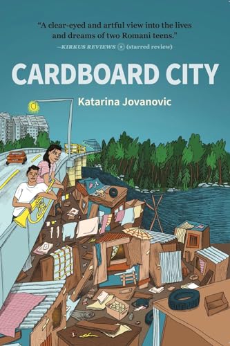 Set in Belgrade, Serbia circa 2006–2009, this slender novel by Jovanovic (The Blue Vase) highlights the displacement and oppression of Romani peoples as experienced by two teens living in an improvised Romani settlement of cardboard dwellings. Nikola, a gifted aspiring trumpeter, and his resourceful older sister Saida live with their fortune-teller grandmother Baba and the twin babies she cares for in Cardboard City, beneath the Gazela Bridge in the heart of Belgrade. After being abandoned early in their lives by their teenage parents, the siblings don’t know their true ages, haven’t learned to read or write, and spend their days struggling to survive by fetching water, picking pockets, and scrounging for food. Saida soon runs away seeking a more comfortable life, while Nikola’s musical talent garners attention and, eventually, an invitation to a prestigious brass festival in Gucˆa. It’s there that the siblings reunite in the home of a generous couple. Convenient plotting and thinly developed characters diminish illuminating messaging surrounding the history and hardships of Romani people in Serbia. Jovanovic nevertheless presents an admirable if ambitious tale about two teens yearning for more and journeying toward a hopeful future. Includes recipes and a historical note. Ages 12–up. (Aug.)